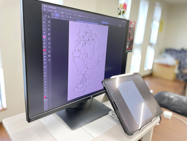 教室では、アナログでもデジタルでも同じ月謝でご指導いたします。メインソフトは「CLIPSTUDIO」です。「アイビスペイント」はそこそこ。「プロクリエイト」は指導外となります。